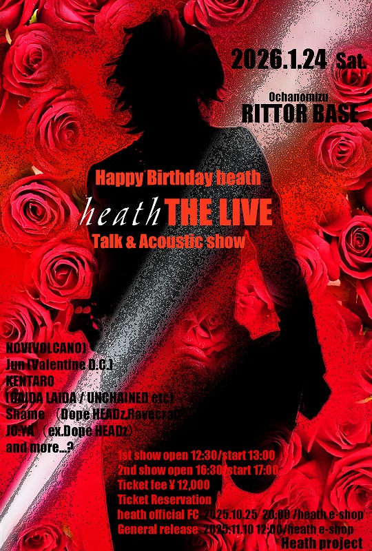 - YOSHIKIディナーショー、20日の最終公演にHEATHがゲスト出演いたします。